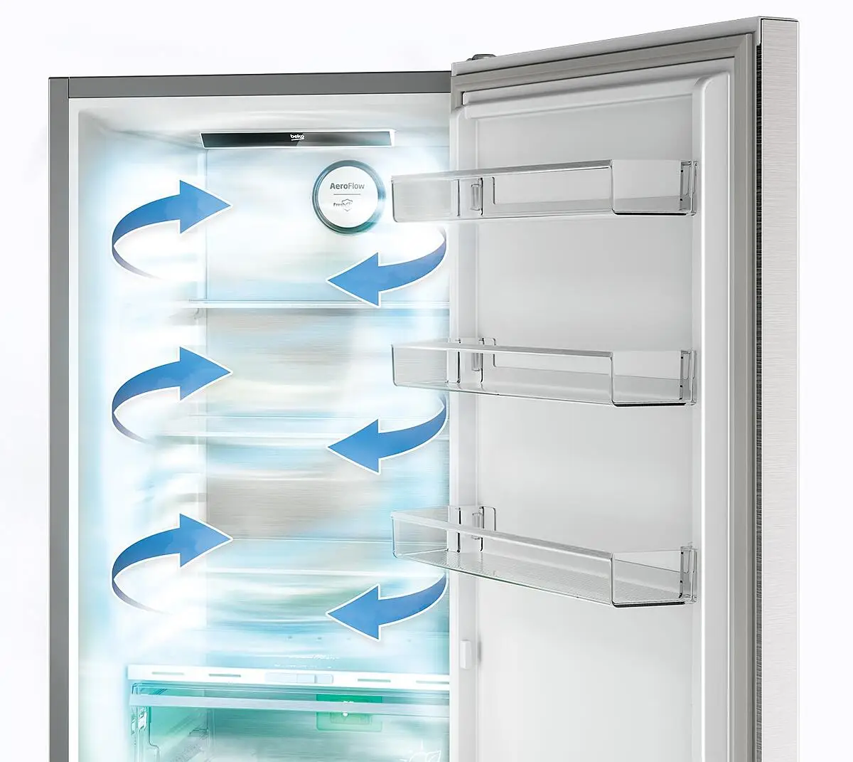 – The AeroFlow cooling system reduces temperature fluctuations, keeping your food protected